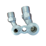 This adapter will allow you to use the stock compressor on a LT Crate engine, LS-3 engine with an aftermarket air conditioning system. The adapter is designed to fit on the compressor with two male fittings to hook onto an aftermarket a/c hose kit. This block is for CVC, 6SAS14C and 7SAS17A Compressors. The adapter's specifications are: # 8 discharge fitting (high side 3/4"-16 male insert oring fitting) and # 10 suction fitting (low side 7/8"-14 male insert oring fitting) Center on center mounting holes (side that goes into compressor) ~1-1/2"