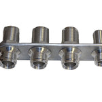 Aluminum bulkhead fitting for the firewall that has a #6 and # 10 Male Insert Oring Fittings for the A/C and (2) #10 Male Insert Oring Fittings for the heater hoses.