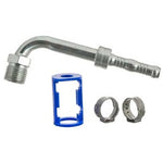 #12 Male Insert Oring 90 Degree Fitting for Reduced Barrier Hose. Includes the fitting,  two clamps and one clamp holder.