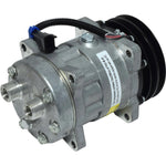 New Sanden style SD7H15 ac compressor. A SD7H15 compressor has seven cylinders in comparison to the SD508, SD510 and SD5H14 compressors which only had five cylinders. This compressor has a cubic inch displacement of 9.5 (155CC). This compressor can be used for R12 and R134a and ships full of oil. This is generic Chinese manufactured compressor which is equivalent to Sanden model numbers 4471, 4735
