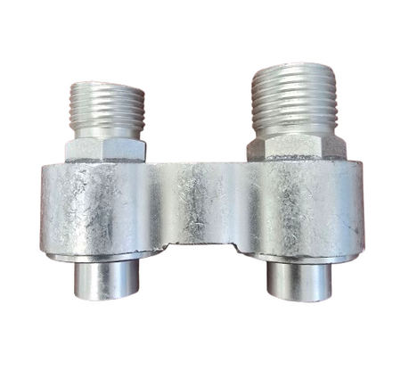 Block fitting with 8 and 10 Male insert Oring fittings *Note: Trim discharge / suction nipple on the adapter block if needed; ensure shavings/debris removed prior to install.