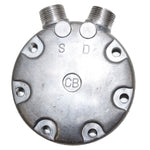 Six bolt Sanden compressor rear head. CB style head. Vertical Tube-O'ring 1" x 14. The rear head includes the necessary gasket in order to change the head.