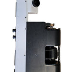 Heat and AC under dash unit. The evaporator has four rectangle louvers. The controls are located in the center of the unit. The defrost adapter is operated with a cable, and uses 2" duct hose. The evaporator has a three speed blower motor with a dual fan setup. The evaporator unit has passenger side hose outlets, the fittings for the hoses will be on the passenger side of the unit when it is installed. The unit is black in color