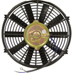 12" Auxiliary Electric Fan to be mounted on the front of the a/c condenser Reversible: Pusher or Puller Straight Blade 80 Watts 12V CFM 750