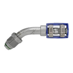 #12 Male Oring 45 Degree Fitting for Reduced Barrier Hose. Includes the fitting,  two clamps and one clamp holder. Fitting end: #12 Hose end: #12 Thread size: 1 1/16"-14