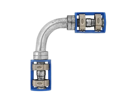 #8 90 Degree Inline Splicer for Reduced Barrier Hose. Includes the two cages and four clips.