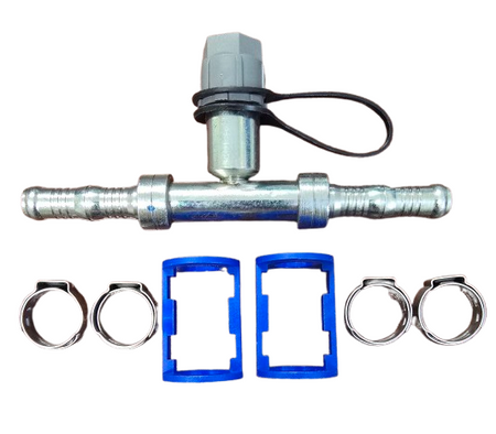 #8 Inline Splicer w/R-1234yf port for Reduced Barrier Hose. Includes the two cages and four clips.