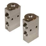 Block Expansion Valve Suction Inlet Thread Size: 3/4"-18 (#8) Suction Outlet Thread Size: 7/8"-18 (#10) Liquid Inlet Thread Size: 5/8"-18 (#6)  Liquid Outlet Thread Size: 3/4"-18 (#8) Tonnage 1.5 Refrigerant R134a...