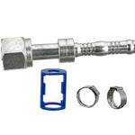 #12 Female Oring Straight Fitting for Reduced Barrier Hose. Includes the fitting,  two clamps and one clamp holder.