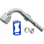 #8 Female Oring 90 Degree Fitting for Reduced Barrier Hose. Includes the fitting,  two clamps and one clamp holder.