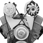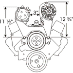 This bracket will sit above the intake manifold for vehicles with plenty of hood clearance. For a Short water pump on a Small block Chevy motor. Bracket sits on the passenger...