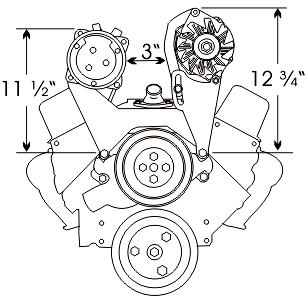 This bracket will sit above the intake manifold for vehicles with plenty of hood clearance. For a Short water pump on a Small block Chevy motor. Bracket sits on the passenger side, includes all mounting hardware Brackets require double groove water pump, triple groove crank and double groove power steering pulleys. If no p/s then double groove water and crank pulley. Metal finish, needs to be painted This bracket is compatible with Sanden v-belt and serpentine ear mount 508, 510, 709 and 7H15 compressors. Alternator bracket not included. *Will not work with Vortec Heads*