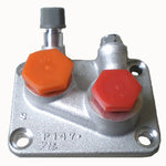 Compressor manifold for 10PA15C and 10PA17C Denso compressors. Has short pressure relief valve and without internal valve. Fits various vehicles and John Deere equipment. It includes the orings. This manifold accepts a #8 and #10 Male Oring Fittings.