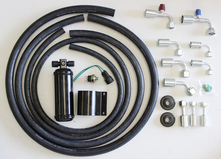 Universal R134a hose kit to run hoses for the entire system. The fittings are beadlock (US Made) with R-134a charging ports, this is a complete kit to change all the hoses on an Oring a/c system or to create new hoses for an aftermarket system.